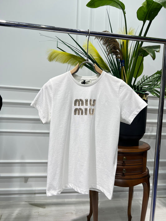 Miumiu Sequin Logo Regular Tshirt For Women