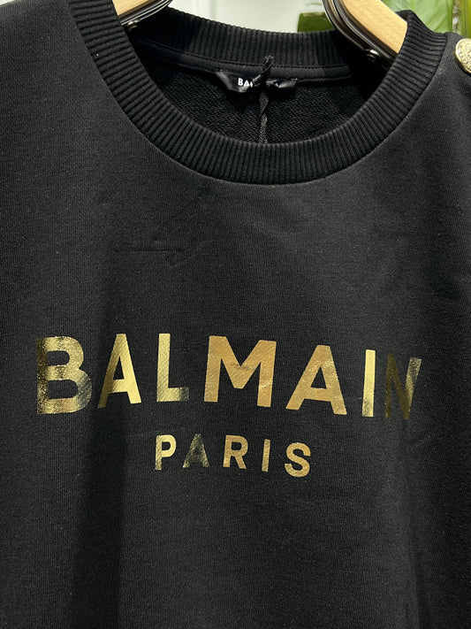 Black sweatshirt with gold Balmain Paris print for women