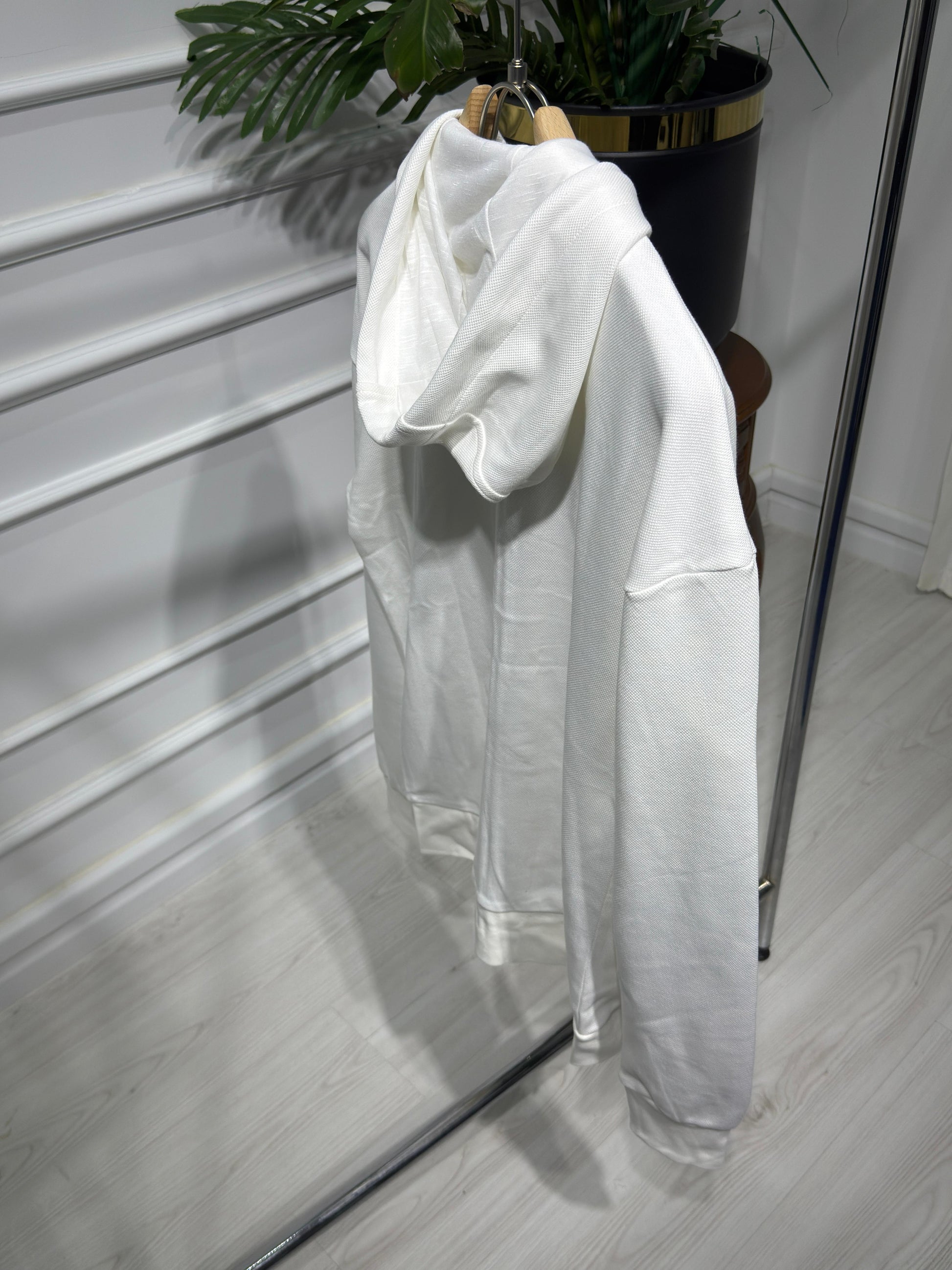 Embriodered logo full-zip white hoodie for men