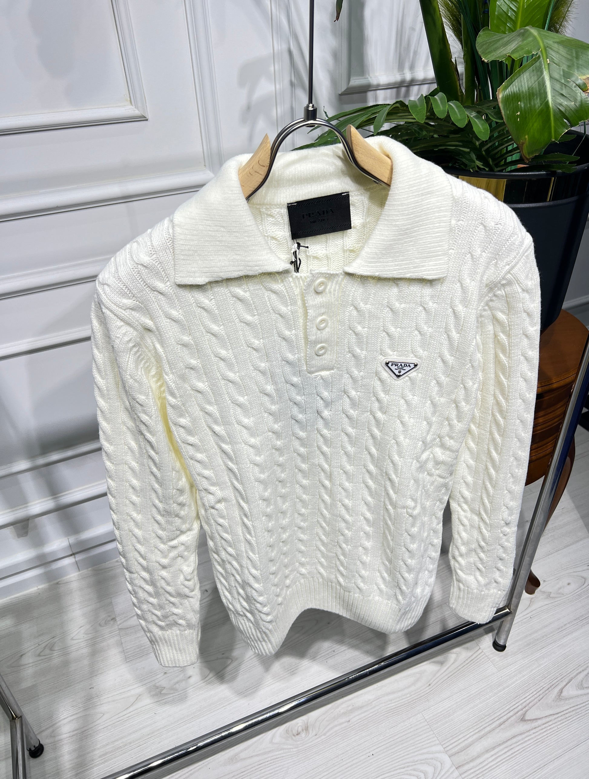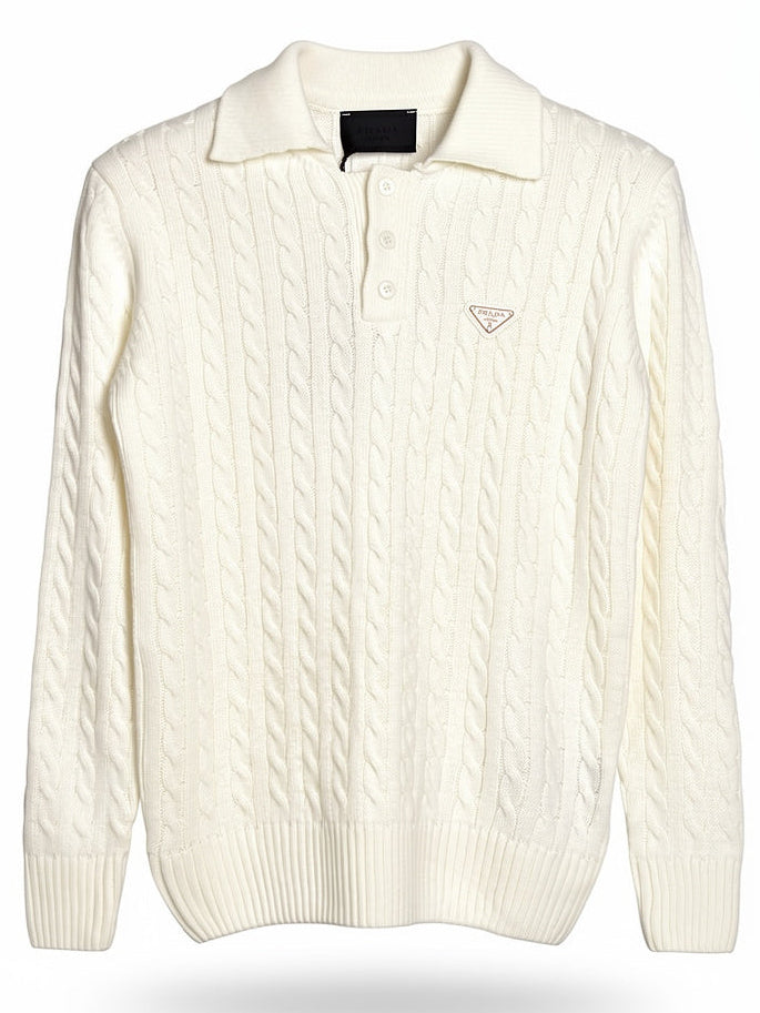Prada Offwhite Knitted Polo for Men